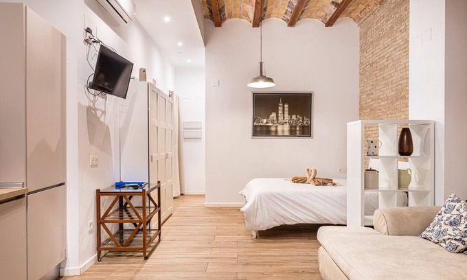 Located in València, the studio apartment Loft Ciudad Vieja has everything you need for a comfortable holiday. The 35 m² property consists of a living/sleeping area, a kitchen and 1 bathroom and can therefore accommodate 2 people. Additional amenities include Wi-Fi with a dedicated workspace for home office, a TV, air conditioning, a washing machine as well as a dryer. This studio apartment features a private covered terrace for evening relaxation.
