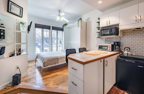 Discover Studio COZY, located in the lively district of Hochelaga-Maisonneuve in the extreme east of Rue Ste-Catherine, an area in the midst of a revival of Montreal. Close to trendy cafes, local markets, and several small parks, this apartment puts you close to iconic places like the Olympic Stadium and the Botanical Garden. Well served by public transportation, it combines comfort, privacy, and direct access to the unique energy of this ever-changing neighborhood.