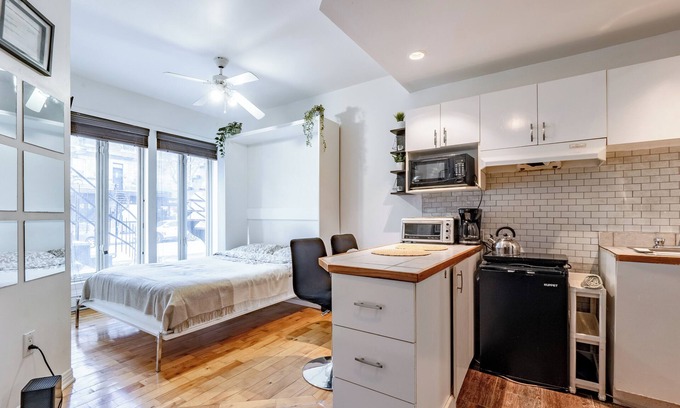Located in one of Montreal's changing neighborhoods, this studio offers you a modern and practical urban experience. With its minimalist and uncluttered design, this optimized apartment is ideal for those looking for a comfortable refuge while wanting the city's energy to be accessible. Hochelaga is a vibrant neighborhood at the crossroads of history and modernity. You'll be surrounded by side cafes, local art galleries, and bustling markets. The neighborhood stands out for its friendly atmosphere and community spirit. Nearby, you can explore emblematic places of the city, such as Parc Maisonneuve, the Insectarium and the Biodôme, while being just a short walk from Montreal's major cultural hubs. Well served by public transport, this strategic location allows you to discover the many facets of the Quebec metropolis.