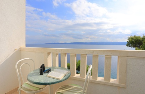 Studio flat can accommodate 2 guests. Beds are situated in 1 sleeping rooms, within 18m2. Guests can use a private balcony to enjoy the warm summer evenings. The studio offers the sea view. Food can be prepared using barbecue which is shared with other guests too.