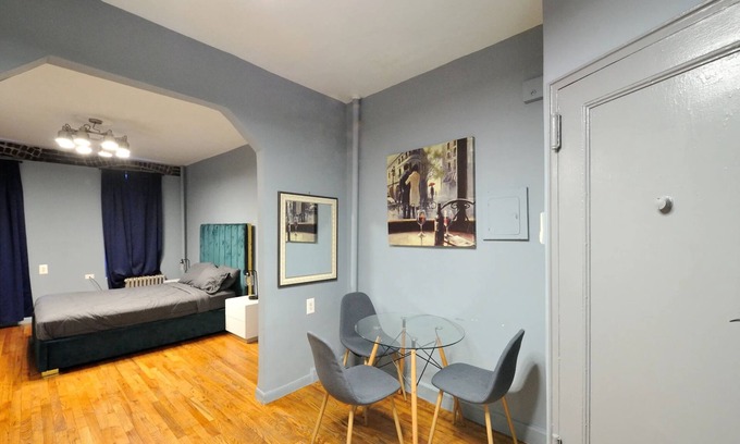 Stay in this cozy studio in the heart of the Upper East Side! Featuring wood floors, updated furnishings, and a calming grey and blue color palette, this inviting space offers WiFi, AC, and TV for a comfortable stay. Conveniently located near top restaurants, attractions, and public transportation.
