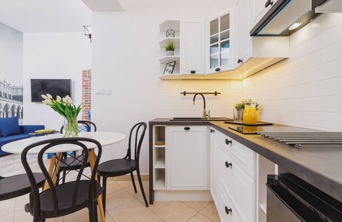 The apartment is located in Krakow in a great location at Zamenhofa Street. Restaurants and eateries are only 400 meters away. The distance to the Vistula Boulevards, where we can rest and relax, is only 1500m. Situated 550 meters from the Old Town, it offers a wide range of cultural - historical, service and culinary amenities. The location in the vicinity of greenery (the Botanical Garden 13 minutes from the apartment) and the proximity of the city center mean that guests can fully enjoy the charms of Krakow. Zamenhofa Street is an attractive location, 10 minutes from the Main Square, a charming addition is Galeria Krakowska, 500 meters from the apartment. The neighborhood also offers the proximity of cultural points - the Słowacki Theater is 280 meters from the apartment, the Pusłowski Palace 150 meters, the Monument to the Battle of Grunwald 550 meters from the apartment.
