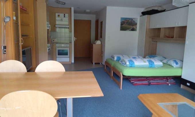 The cosy studio offers all the comfort you could wish for on your holiday. It is located in an apartment block, on the 1st floor, 200 metres from the public transport stop. The mountain railway station for your skiing or hiking excursions is located directly below the house and can be easily reached on foot or on skis in just a few minutes. You can also reach a doctor's surgery, a chemist and a bakery on foot in just a few minutes. There is also a Spar supermarket in the village and a Coop in Unterwasser (approx. 4km) right next to the Postbus stop.