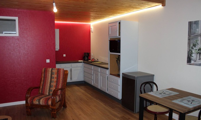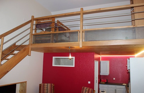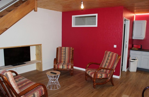 Studio in an old barn is located in Javene. Studio in an old barn provides accommodation, featuring Bedding/Linens, Fireplace/Heating, Child Friendly, among other amenities. This Apartment features Bedding/Linens, Fireplace/Heating, Child Friendly, to make your stay a comfortable one.