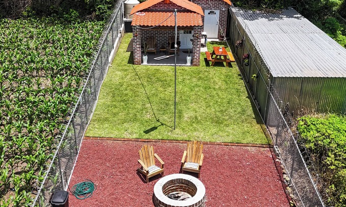 This charming rustic studio offers the perfect blend of cozy comfort and natural beauty. Tucked away in a quiet area surrounded by trees, our small studio is ideal for solo travelers or couples. The room feels cozy and inviting, with clean linens and neutral colors, creating a calm, soothing atmosphere. The space features a comfortable queen bed with soft linens, natural textures for a warm and rustic feel, a compact kitchenette with essentials for light meals preparation, a small porch with seating area to relax, read a book, or enjoy a cup of coffee/tea , and a fire pit for evening chat under the stars.