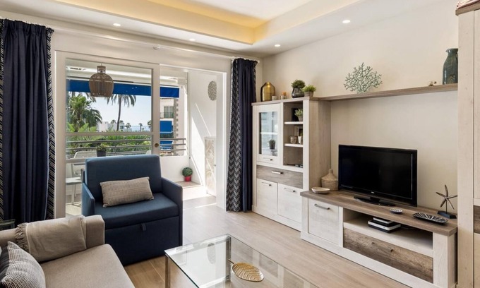 This 45 square meter studio has been fully renovated and decorated in blue and marine tones, creating a fresh Mediterranean atmosphere from the moment you enter. It features an open space that integrates the living room, bedroom area, and kitchen, ideal for couples who value functionality and comfort in a compact and elegant setting. The terrace offers a cozy place to relax and enjoy the outdoors.