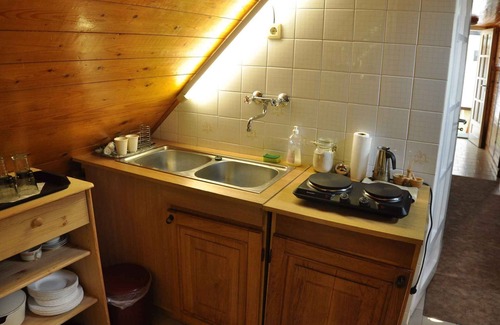 The studio built in 1985, was renovated in 2020 and is furnished in a functional style. The property is located in a residential area, on the outskirts. Also due to its quiet location the domicile is popular. Available for use: sunbathing lawn, parasol, sun lounger, terrace, garden furniture and courtyard. ovenLocationSiofok. The studio is located on a 150 sqm enclosed garden plot with meadow, flowers, shrubs and trees, bordered by a fence and a hedce. The landlord lives permanently in a separate building on the property. Access is via a side road (asphalted). Parking (for 1 car) is available on the property. Specialair conditioning. There is no heating.Facilities: internet access (WLAN). Dogsallowed, EUR 3.00/pet per day. DistancesShopping 300 m, restaurant 300 m, town center 2,6 km. Siofok: airport 1500 m, doctor 2 km, railway station, cinema, bank each 2,6 km. discotheque 3 km and pharmacy 500 m. thermal bath, indoor swimming pool, sauna each 40 km in Tamási. Railway line 2,6 km. Main road 2,6 km. Children's playground 500 m. In summer: Balaton 3 km in Siofok (private beach 3 km in Siofok). dog beach in Balatonföldvár 15 km. golf in Keszthely 85 km. Siofok: tennis, mini golf, fishing, diving, water sports, boat rental, boat launch each 3 km. horse riding 5 km. In winter: Ski lift 60 km in Eplény. Ski area 60 km in Eplény (Eplény ski area). ski bus 60 km. ski rental, ski school, sledge slope, trail, ice skating each 60 km in Eplény. DivisionStudio, 1 floor, 1 room (including 1 bedroom), 30 sqm, in total 2 beds. RoomThe entrance to your studio is located on the 1st floor