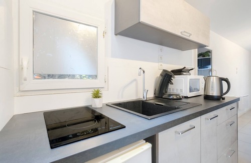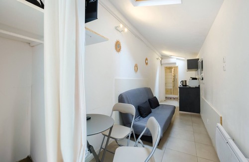 Enjoy a pleasant stay in Nice in this fully equipped 18m² studio, located in the quiet Vernier neighborhood. Ideal for a romantic getaway. The studio features a bright living room with a sofa bed, a TV, and Wi-Fi. The kitchen is fully equipped for easy meal preparation. There is also a shower room. For your comfort, air conditioning is installed in the studio.