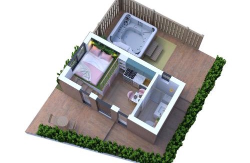 Food & DrinkChocolate/Cookies, Bottle of water, Tea/Coffee makerBathroomTowels, Free toiletries, Bathtub or shower, Spa tub, Bathrobe, Shower, Toilet paper, Private bathroom, Body soap, Hairdryer, ShampooMedia & TechnologyStreaming service (like Netflix), Satellite channels, Flat-screen TV, Cable channels, TVGeneralAir conditioning, Trash cans, Heating, Private entrance, FanActivitiesHot tubKitchenToaster, Dining table, Kitchenware, Oven, Cleaning products, Coffee machine, Refrigerator, Kitchen, Wine glasses, Electric kettleBedroomWalk-in closet, LinensLiving AreaDining areaViewQuiet street view, Garden viewOutdoorsOutdoor dining area, Terrace, Outdoor furnitureAccessibilityEntire unit located on ground floorBuilding CharacteristicsDetachedRoom AmenitiesSocket near the bed, Non-feather pillow |