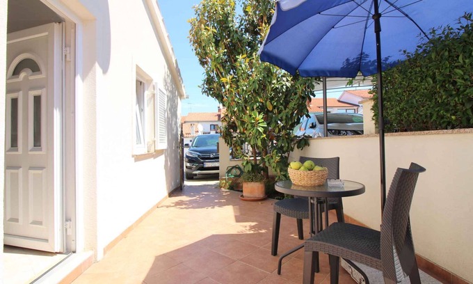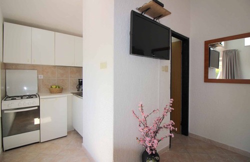 The studio is located in an apartment house and is furnished in a functional style. The property is located in a residential area, on the outskirts. Also due to its quiet location the domicile is popular. Available for use: parasol, terrace and garden furniture.LocationPorec. The studio is located on a 200 sqm enclosed plot, bordered by a fence and a wall. The landlord lives permanently in the house, but uses a seperate entrance. The holiday flat IST POR 249 is located in the same house Access is via a side road (asphalted). Parking (for 1 car) is available on the street in front of the house. Specialair conditioning.Facilities: internet access (WLAN). TV reception takes place via satellite. Dogsallowed, EUR 8.00/pet per day. DistancesShopping 300 m, restaurant 200 m, town center 800 m. In summer: Adriatic Sea 400 m in Porec (beach 400 m in Porec featuring gravel, rocks and bathing plateaus). dog beach, mini golf, diving each 600 m. water sports, boat rental each 600 m in Brulo Sport. tennis in Diamant 300 m. Sports facilities 400 m DivisionStudio, 1 floor, 1 room, 27 sqm, in total 2 beds. RoomThe entrance to your studio is located on the ground floor and leads over the terrace directly into the living & bedroom. Living/bedroom with 1 double bed, TV, dining area and access to the terrace (garden furniture, parasol). Cooking nook in the living & bedroom with gas stove (2 flames), electric stove (2 plates), oven, fridge, coffee machine, toaster and electric kettle. Bathroom with shower, 1 washbasin and WC. Terms of lease and pricesIncluded in the priceinternet access, air conditioning, parking place, electricity, gas, water, final cleaning, bed linen, Wireless Internet access. Side costs-Additionally(Payable when booking)/registration fee obligatory 12,50 € per object per stay. local tax.Deposit:EUR 100,-/object
