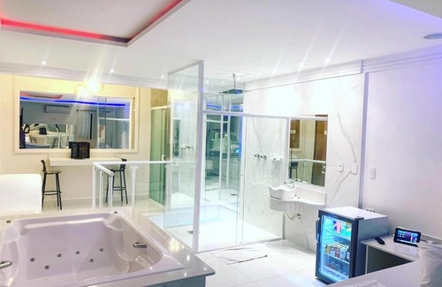 Studio Motel is located in Santos. Each room here will provide guests with a TV, free WiFi access and air conditioning. Room service is also available. Private bathrooms come with a hairdryer and free toiletries. Some also feature a hot tub. Extras include a CD player and cable channels. At Studio Motel guests will find a 24-hour front desk, a kitchen and free parking. The love hotel is 1.1 mi from Santos Bus Station, 0.7 mi from Monte Serrat and 0.8 mi from Municipal Theater. Guarulhos International Airport is 37 mi away.