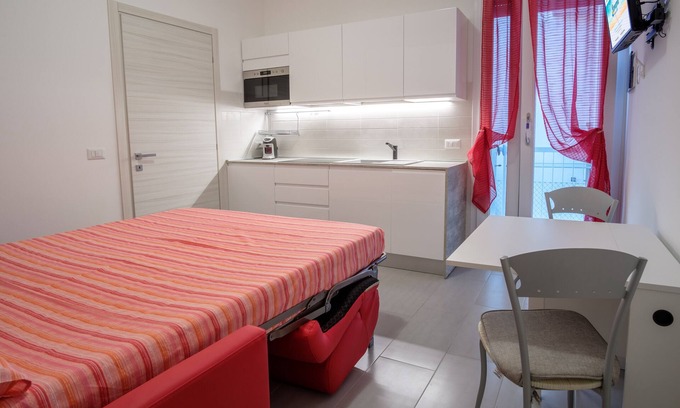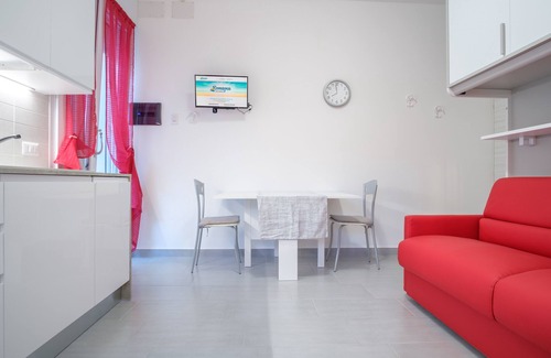 Studio apartment on the mezzanine floor with independent entrance, in an elegant context totally renovated, inside a fenced courtyard. It overlooks the beach and the main town square directly. The large bathroom has a shower cubicle. It is tastefully furnished according to the latest trends in furniture. The kitchen is equipped with all the most modern appliances (induction hob, microwave, washing machine, dishwasher, etc ....). Ideal for couples or families with a child, or for anyone who wants to enjoy the perfect location on the beach, and to participate in the evenings organized by the San Mauro Mare Village, in the square or on the waterfront. Furthermore, for maximum safety, it is also equipped with an anti-intrusion alarm system.