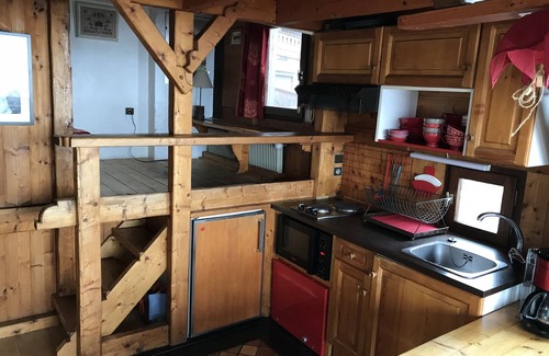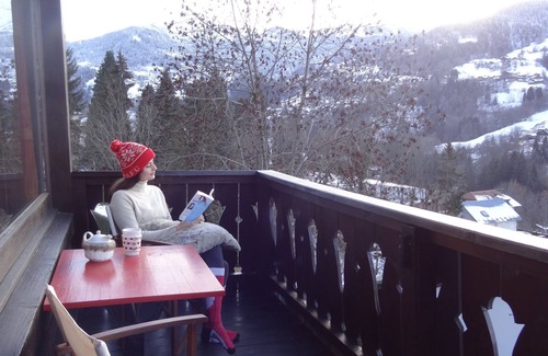 This former hotel was transformed into apartments in the 80s, our studio with unique design has taken the place of the restaurant enjoying a panoramic view of the Aravis and Mont Joly. For over 30 years it is our family home, small but well designed we are all in love.