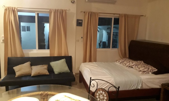 STUDIO POLYCROM is one of five rooms and studios that compound hotel Bea it is equipped with the following features air condiotioned, fan , private bathroom , refrigerator , electric stove microwave , smart tv , cofee maker dining tables and includes a twin bed and a coach bed optionally we could add anoteher twiin bed .