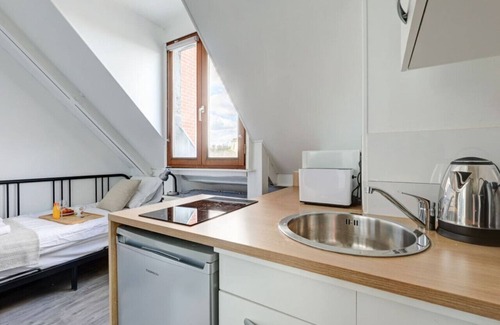 🍳 Équipé d’une plaque de cuisson, d’un micro-ondes, d’une machine à café Nespresso, d’une bouilloire