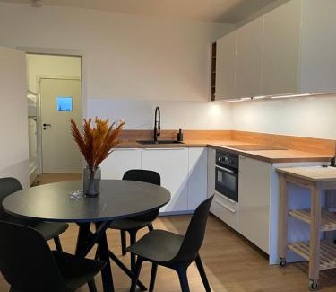 Studio safari - Modern, vernieuwd app met zicht op zee is a recently renovated apartment in Nieuwpoort, near Groenendijk Strand. Guests staying at this apartment have access to a balcony. Free Wifi is available throughout the property and Nieuwpoort Beach is a 3-minute walk away. Offering a terrace and sea views, the apartment includes 1 bedroom, a living room, cable flat-screen TV, an equipped kitchen, and 1 bathroom with a bath and a shower. For added privacy, the accommodation features a private entrance. Guests at the apartment will be able to enjoy activities in and around Nieuwpoort, like walking tours. Plopsaland De Panne is 13 miles from Studio safari - Modern, vernieuwd app met zicht op zee, while Dunkerque Train Station is 24 miles away. Ostend - Bruges International Airport is 8.7 miles from the property.