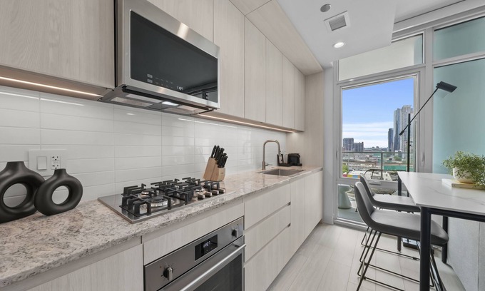 - Fully Equipped Kitchen (including Plateware & Glassware, Pots, Pans & Utensils, Refrigerator, Induction Cooktop, Convection Wall Oven, Microwave, & Dishwasher)