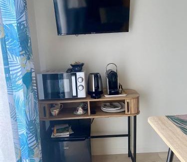 Providing a garden, Studio, sur le Chemin des Hortensias provides accommodations in Ploërmel. This property offers access to a terrace, free private parking, and free Wifi. Museum Of Fine Arts, Vannes La Cohue is 31 miles away and Branfere is 28 miles from the apartment. Towels and bed linen are provided in the apartment. For added privacy, the accommodation features a private entrance. Guests can enjoy fresh pastries during the continental breakfast. Vannes Train Station is 30 miles from the apartment, while Vannes Marina is 30 miles away. Rennes–Saint-Jacques Airport is 40 miles from the property.