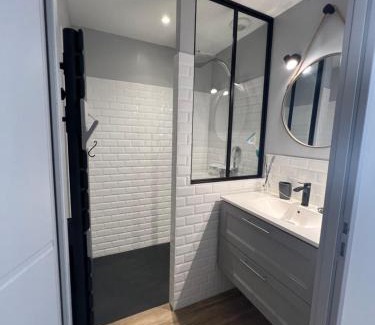 Offering a garden, Studio tout confort climatisé avec jardinet, en centre bourg, proche plage, mer, La Rochelle et Chatelaillon features accommodations in Angoulins-sur-Mer. The air-conditioned accommodation is 6.7 miles from Exhibition Park of La Rochelle. Free Wifi is available throughout the property and L'Espace Encan is 5 miles away. Featuring a terrace with garden views, this apartment also includes a flat-screen TV, a well-equipped kitchen with a microwave, a toaster, and a fridge, as well as 1 bathroom with a walk-in shower and a hair dryer. The property has an outdoor dining area. La Rochelle Train Station is 8 miles from the apartment, while The Minimes Marina is 5 miles from the property. La Rochelle - Île de Ré Airport is 10 miles away.