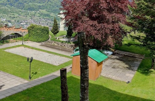 The large studio offers a double bed 160x200 cm, built-in wardrobes, a kitchenette with fridge, stove, microwave, coffee machine and tea maker. Kitchen utensils and dishes are also provided. The bathroom can be reached directly from the studio and has a bathtub with shower, a washbasin and a toilet. The studio has a separate entrance and is conveniently located. The view is breathtaking. The castle park in front of the studio can also be used. Bad Ragaz, the Tamina Therme, the golf course, the Tamina Gorge, the fashion outlet in Landquart, the Bündner Herrschaft, Sargans with countless shopping opportunities and the Pizol Bahn can be reached in about 10 minutes by car. Zurich is also only an hour away. Perfect location to enjoy the Swiss Alps. There are countless activities like hiking, biking, golfing, swimming in the Thamina Therme, shopping, climbing, canyoning and much more.