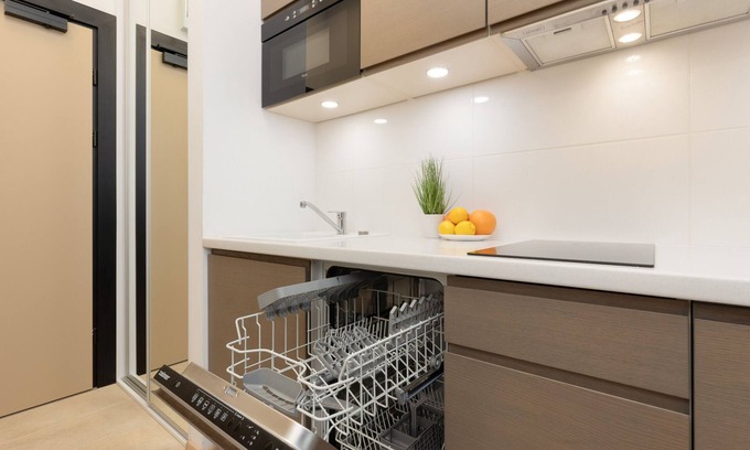 This comfortably furnished studio apartment can accommodate 2 guests. It consists of a living room with a kitchenette and a bathroom with a bathtub. A great asset is the air-conditioning that takes care of the appropriate temperature of the interior. Functional equipment of the apartment such as a dishwasher and a microwave allow to feel like at home, and entertainment is taken care of by multimedia such as a free wireless Internet connection and a flat-screen TV with cable and SmartTV access. The interior is warmly and tastefully decorated. Guests are provided with complimentary toiletries, towels and bed linen to start their stay.