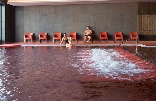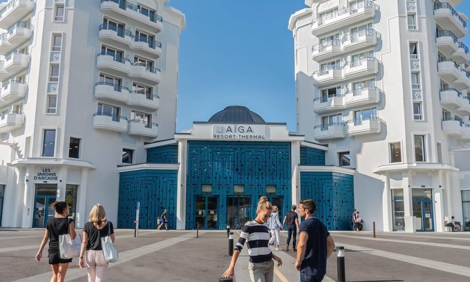 Thermal Spa, nature, volcanoes and UNESCO World Heritage: Between town and countryside, during your stay you will enjoy all the advantages of Châtel-Guyon, a charming thermal spa: a preserved nature, and various activities for well-being and tourist discoveries for everyone's taste like visits to tourist sites, hiking, Nordic Walking, canoeing, mountain biking, yoga, qi gong, meditation,... . Ideally located at the feet of the Auvergne Volcanoes, in the heart of the exceptional geological site "Chaîne des puys -Faille de Limagne", recognised as a UNESCO World Heritage Site, Châtel-Guyon is a welcoming and lively spa town where you will love to recharge your batteries! With its casino and theatre, its cafés and restaurants, and its direct access to nature, it is the ideal starting point for discovering the Auvergne. Enjoy an exceptional holiday or wellness at Aïga resort, whether it is for a weekend, a week or a longer stay. The 90 cozy appartments, fully equipped, are modern and directly connected to the thermal spa for a deeply relaxing stay or health prevention spa treatment. Access to thermal spa is against a fee and not allowed for minors under the age of 16. The area includes massage cabins, a thermal water pool of 150 m2, one outdoor whirlpool, 2 hammas, a thermal mudpool, outdoor solarium and a black light relaxation room.