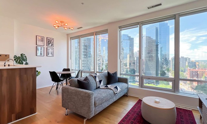 This modern retreat features free high-speed Wi-Fi, making it easy to stay connected or plan your adventures in the city. The open concept living area is perfect for relaxing after a day of exploring, while the fully equipped kitchen invites you to whip up a delicious meal.