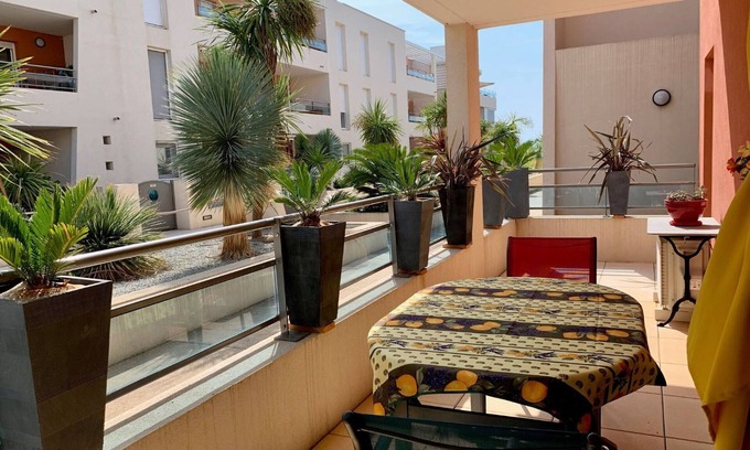Very nice apartment of 60 m² located in a luxury residence a stone's throw from the Etang de Thau and the beach of Mèze. This apartment located on the ground floor has a beautiful living room with a fully equipped kitchen area, (oven , dishwasher, hood, washing machine, fridge/freezer combination), a dining area, a TV relaxation area - (Please note the sofa is not convertible), all opening onto a beautiful 14 m² terrace. The sleeping area includes 1 bedroom with a 160 cm bed, a bedroom with 1 140 cm bed - a bathroom + wc. You can park your vehicle underground in a private box... This apartment is ideal for spending a nice family vacation with friends in a quiet area near the Etang de Thau. Animals are not allowed. NON-SMOKING accommodation - Household linen not provided. during heating periods a supplement will be requested for your consumption during your stay, and will be paid on site on the day of your arrival. Parties not authorized in the property.