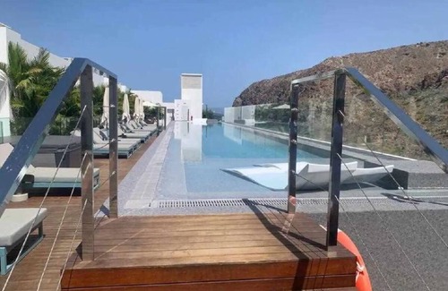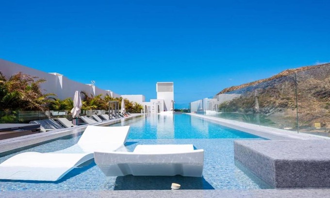 Enjoy a wonderful stay at this modern 2-bedroom, 3-bathroom apartment located in Palm-mar, on the stunning sea front complex called “Infinity”. Indulge yourself in our lavishly appointed rooms, unwind and rejuvenate on the balcony and take in the breath-taking sea views! Some of the main highlights of this apartment include a roof top communal heated pool, communal jacuzzi and gym!