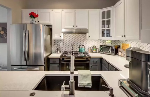 Enjoy a stylish experience at this centrally-located 2BR 2BA downtown modern bungalow with modern cathedral ceilings and designer-inspired finishings throughout.