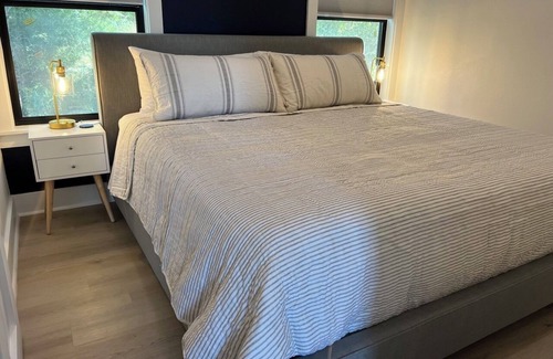 Experience the luxury of our spacious Cottage, designed with an open-concept living area and a beautifully equipped kitchen. You'll also find the convenience of a laundry room and Keurig coffee essentials for your morning brew. The Cottage offers stunning views of a wide, peaceful open field, making it an ideal spot to relax. Enjoy breathtaking sunsets from the back porch as you sip your morning coffee or unwind in the evening.