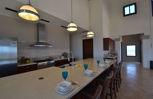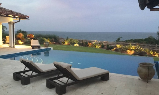 This luxurious 3 bedroom waterfront home is 25 steps away from the beach. Located in the calm and quite gated community of Costa Pedasi. The moment you walk in you know there is no other spot you want to be for your vacation. You look out the back glass folding doors and you see the Salt Water Infinity pool and panoramic view of the Pacific Ocean. The house is fully furnished inside and out. The master bedroom includes a king-sized bed, walk-in closet and large ensuite with both a shower and tub; while the 2 other rooms each have a queen sized bed and an ensuite with a shower. All rooms have individually controlled air conditioning units and ceiling fans. Kitchen includes stainless steel appliances such as: a 6 burner range, oven, double-door fridge, dishwasher, Wine fridge and Beverage fridge and utensils. There is a walk-in pantry as well, and the wet bar. The house has both a washer and dryer, all towels and linens will be provided. IPTV is provided for the TV plus the house has three Sonos speakers to run your music streaming services. . High Speed Wi-fi is available throughout the house and Gazebo. The house & patio are wheelchair accessible. Grounds are fully landscaped and fenced with over 40 LED pathway / pot lights. The house and grounds are beautiful night or day. There is a very large outdoor gazebo with very comfortable wicker furniture, bbq area, and 3 loungers and a view of the Pacific Ocean. The house was designed to be wide open during the day with two large folding doors that open 10' each to allow the cool pacific breezes to cool the house. The colored pool light and over 40 LED Landscape lights throughout the yard give the house the feeling of your own private resort. plus we have a new 24KW Generac Generator to ensure a continue source of power when the power goes off in Panama, This happens way to often which can result in hot sleepless nights etc.
