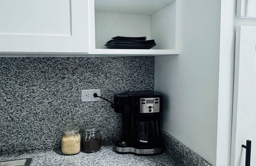 The upstairs floor or the Penthouse is mostly for relaxation or entertainment, you can enjoy the ocean view and the calm breeze. The Penthouse has also a private balcony, 55 inch smart Tv, half a bathroom, a smart tv, a sofa couch that turns into a full size bed, a Domino table, Dart 🎯 board and a foosball/mini pool table.