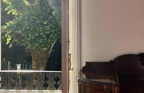 The entire 114.7-square-meter apartment is furnished with tasteful antiques and original art – as well as a grand piano, making this an ideal location for musicians as well as artists and writers looking for solitude and inspiration.