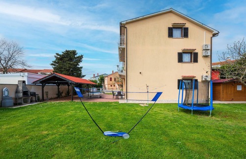 Relax during your holiday in this beautifully furnished holiday apartment in the village of Valbandon, close to beaches and beach bars. The holiday apartment offers all the comfort you need and consists of three bedrooms and two bathrooms. The large garden is ideal for your little ones to play carefree. Enjoy the terrace while you prepare barbecue dishes or drink a glass of good Istrian wine such as the famous Malvasia or Teran. Nearby you will find excellent restaurants and taverns where you have the unique opportunity to taste fine traditional specialities and enjoy unforgettable Istrian flavours. Explore the surrounding area, visit nearby Faana and take part in the numerous events that take place during the summer months. For lovers of natural beauty, we recommend a visit to the beautiful Brijuni National Park. Those who want to learn about history through imposing ancient monuments can visit nearby Pula, a city known for its rich cultural heritage. The city's most impressive buildings date back to Roman times. In addition to the famous Arena and the well-preserved Temple of Augustus at the Forum, the Dirke Mosaic and the Triumphal Arch of the Sergi are also part of a visit to the city. Vibrant nightlife awaits you during the international film festival, when the amphitheatre is transformed into a projection stage. All this is accompanied by a rich entertainment programme.