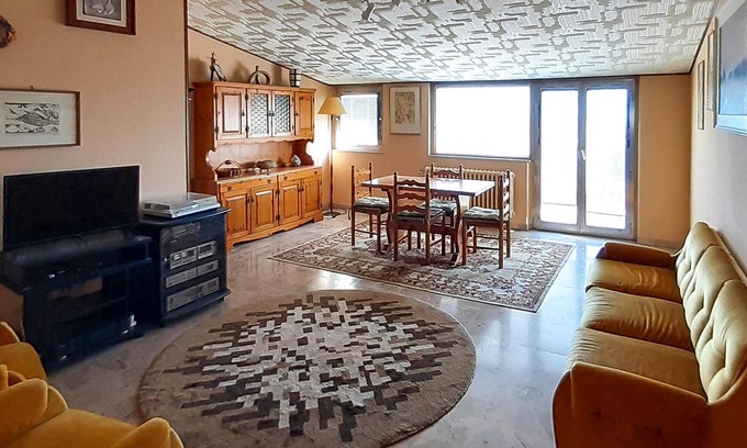 Take a deep breath and enjoy a relaxing vacation in this wonderful setting. The apartment, on the 5th floor of a house, welcomes you with simple comfort and enough space for a small family. Here you can relax, listen to music or enjoy delicious meals after your hikes in the countryside. Start the morning with a steaming cup of coffee on the balcony and take in the mountain panorama.