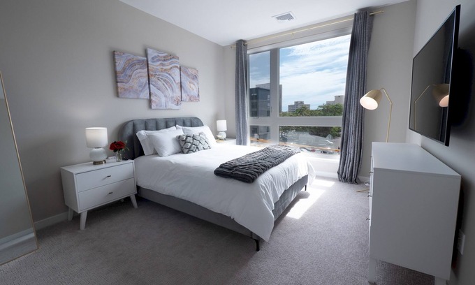 This sunlit apartment, located in a brand-new luxury complex at the center of New Haven’s historic downtown, offers unparalleled comfort, service, and amenities. You can watch a movie on a 4K HDTV, work in the conference rooms, and whip up dinner in a fully-equipped kitchen.