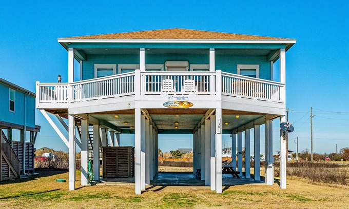Welcome to The Gem of Gilchrist by Casago Bolivar Vacations, your sea breeze home away from home! This charming beachfront retreat places you right on the pristine sandy shores of the Gulf of Mexico. With breathtaking water views and a relaxing hammock, it's the perfect place to unwind and enjoy the beautiful Texas coast.