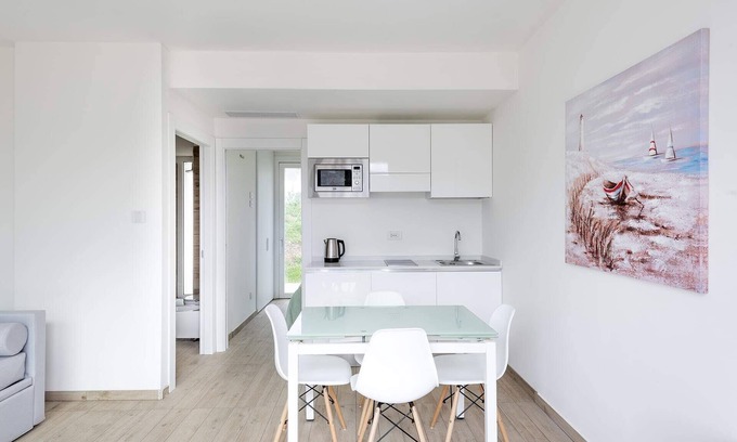 The Capo Falcone, built in 2020, offers one and two bedroom apartments just a short walk from La Pelosa, one of the world's best beaches. It's a protected area with amazing views of Asinara Island. Relax by the pool, let the kids play, and enjoy BBQs in the garden. Cafes and restaurants are nearby, and sports enthusiasts can go diving, windsurfing, trekking, or take a boat trip. Stintino is 4km away with an old harbor and market. You can rent umbrellas and sunbeds at the nearby beaches.