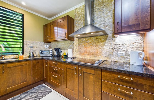 This villa has all the comforts of home and offers the best resort living. We begin by offering air-conditioning throughout the entire home and a covered carport for 2 vehicles. Cable TV, Wireless broadband internet, and a private phone line are also included in your rental. All televisions are HD flat screens. Cleaning service is included every 2 days from the day of check-in at no additional cost. As a guest of this property, we include a complimentary welcome basket with coffee, coffee filters, salt, pepper, cooking oil, shampoo, and soap, are all included. The villa is FULLY stocked with other bonus items for your personal use such as beach towels, folding beach chairs, a cooler, and more!!!