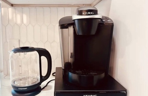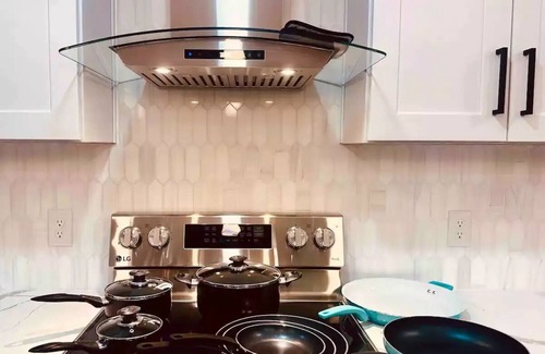 Complimentary Wi-Fi, Netflix, tea and coffee. The kitchen comes fully loaded with brand new stainless steel appliances such as a microwave, fridge, oven, and dishwasher along with glasses, mugs, dishes and cutlery.