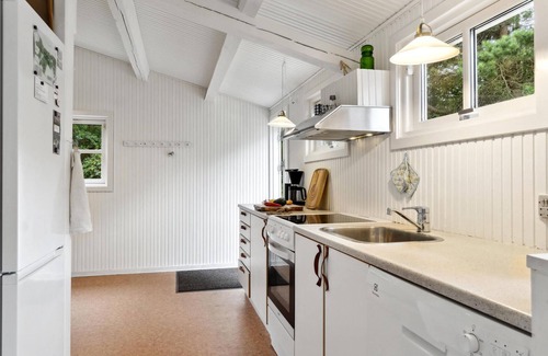 Welcome to this inviting wooden house. It charms with bright rooms, timeless furnishings and classic summer house charm, which will ensure that you relax here in a pleasant ambience. Enjoy meals together with a beautiful view of the outdoors and look forward to cozy evenings with the cozy crackling of the flames in the fireplace.