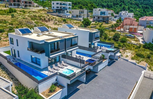 Look forward to fantastic sea views in this modern vacation home with pool.