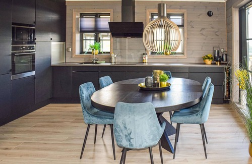 This modern and top equipped family cabin on 3 floors is a diamond among the vacation homes in Holtardalen! Together with your extended family and your pet, they can relax and enjoy themselves here. The high-quality furnishings, which exude a sense of coziness and a feel-good atmosphere, complete the overall package. Find rest and relaxation in the bedrooms and conviviality in the living areas. The outdoor area also offers you great opportunities. Enjoy the sun from morning to night on the different patio areas. Moreover, you can take relaxing baths in the jacuzzi after coming out of the sauna and enjoy the view of the countryside. In the garden you will also find a barbecue hut for 12 people, where you can spend cozy evenings.