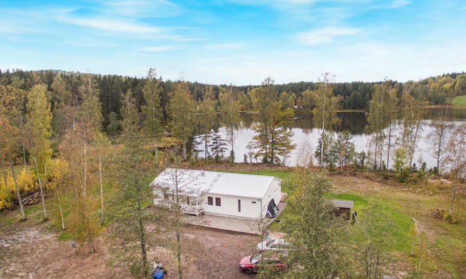Welcome to this charming house for nature lovers. From here, the panoramic view of Lake Eldan with clear water will directly catch your eye. You can enjoy this from your large terrace with built-in wood-burning jacuzzi. You can alternately swim in the lake and go to the wooden sauna, which is just 20 meters away. You can sail the lake with your own boat, motor can be rented. Make yourself as comfortable indoors as outdoors in all privacy and enjoy the silence and beauty of the region.