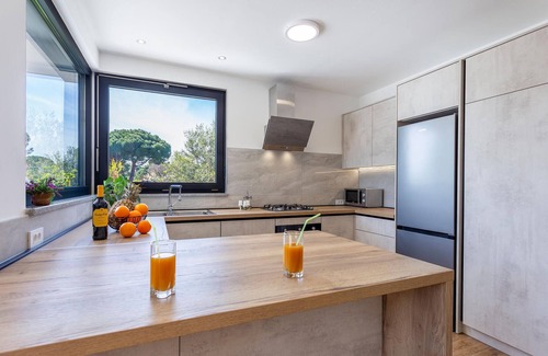 Look forward to this modern and stylish vacation home with pool and large, beautifully landscaped garden.