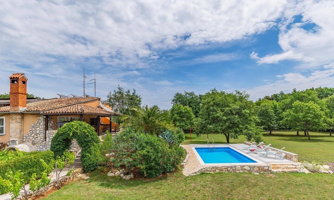 This traditional cottage is located on the outskirts of the village of Valtura, near the archaeological sites of Nesactium. The interior of the house is practical and simply furnished. An ideal place for nature lovers who want to spend their free time in all the tranquility of a village. Refreshment from the summer heat you can find in the outdoor pool. Prepare dishes on the grill in pleasant company, with a good glass of wine on the covered terrace. Visit the popular town of Medulin and enjoy sunbathing and swimming on the famous sandy beach.