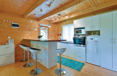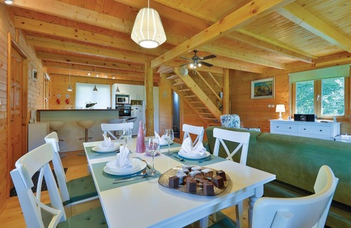 Just off Varazdinske Toplice is this carefully furnished wooden vacation home. On the large property is the pool, which has a water geyser and UV water treatment You will find plenty of games for children and a terrace, , where you can relax in the shade. The interior of the house is nicely and modernly furnished and the house itself is equipped with all the amenities needed for a carefree and relaxing vacation. The first floor consists of a living room overlooking the terrace, kitchen and dining area and a bathroom. On the second floor where the minimum ceiling height is about 60 cm, there are two bedrooms, a gallery and a bathroom. Only about a kilometer from the house is Varazdinske toplice, where you can enjoy the benefits of thermal water, wellness facilities, sports facilities and walks in nature. During your stay we recommend a visit to the beautiful town of Varazdin, whose monumental and artistic heritage with its lush Baroque architecture, as well as the harmony of its squares and unique romantic streets will delight you. Do not miss a visit to the Museum of Angels.