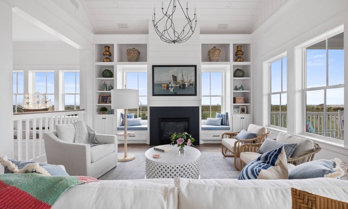 Welcome to this stunning 5-bedroom, 4.5-bathroom vacation rental located near the beach. This beautifully appointed home offers all the luxurious amenities you could want including multiple spacious decks with comfortable outdoor furniture where you can relax, soak up the sun, watch the amazing sunsets or breathe in the healing salt air.