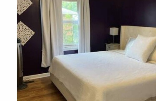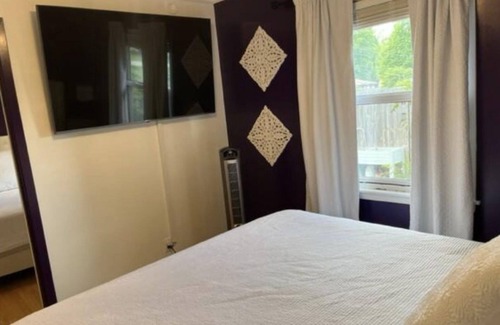 Primary bedroom: King bed with extra linens and pillows, full closet, full dresser, large tv, pack and play is available with sheets in the closet, and attached water closet